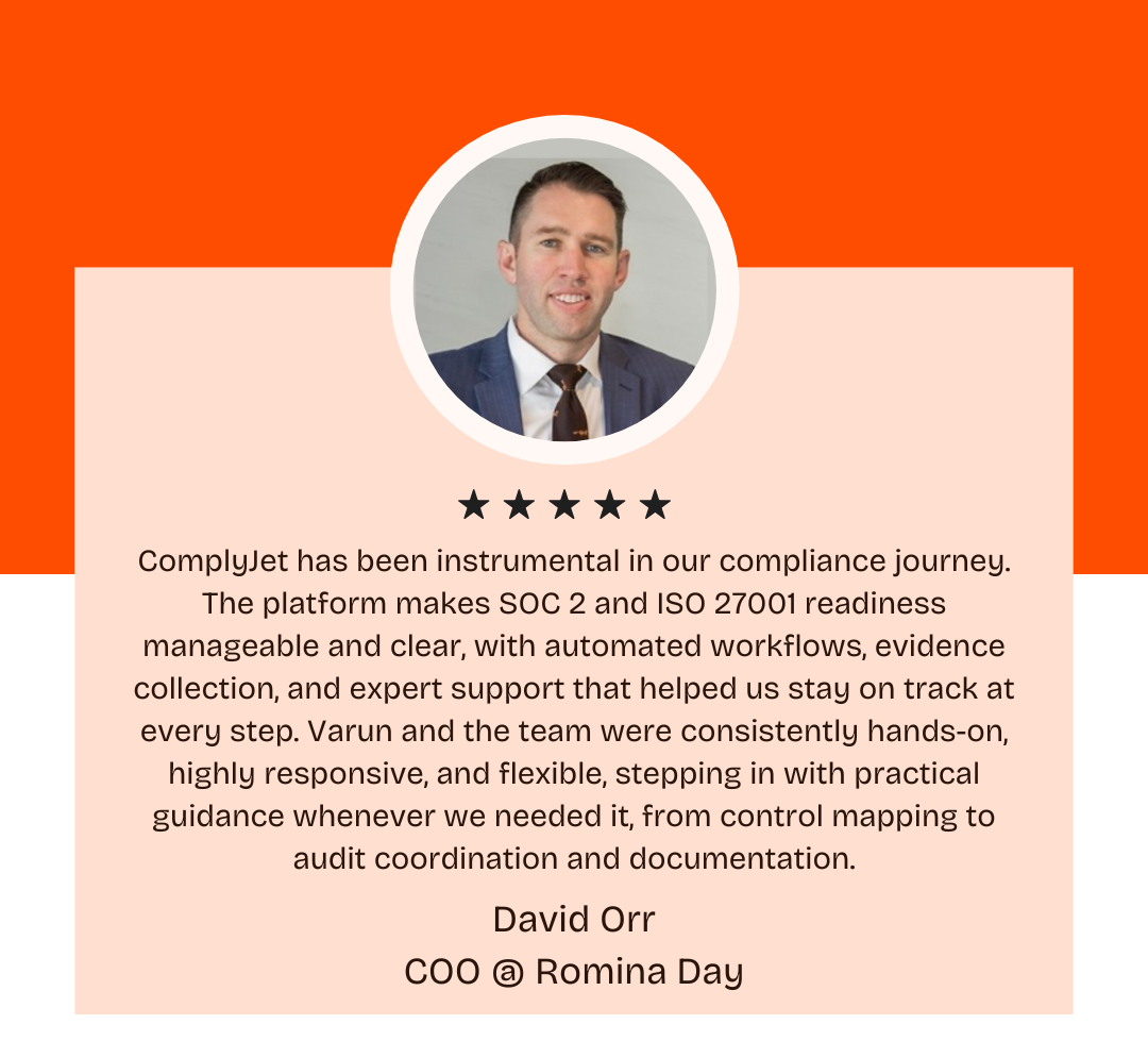 To do this, Romina Day partnered with ComplyJet to formalize their security controls and operationalize their compliance journey across SOC 2 and ISO 27001.